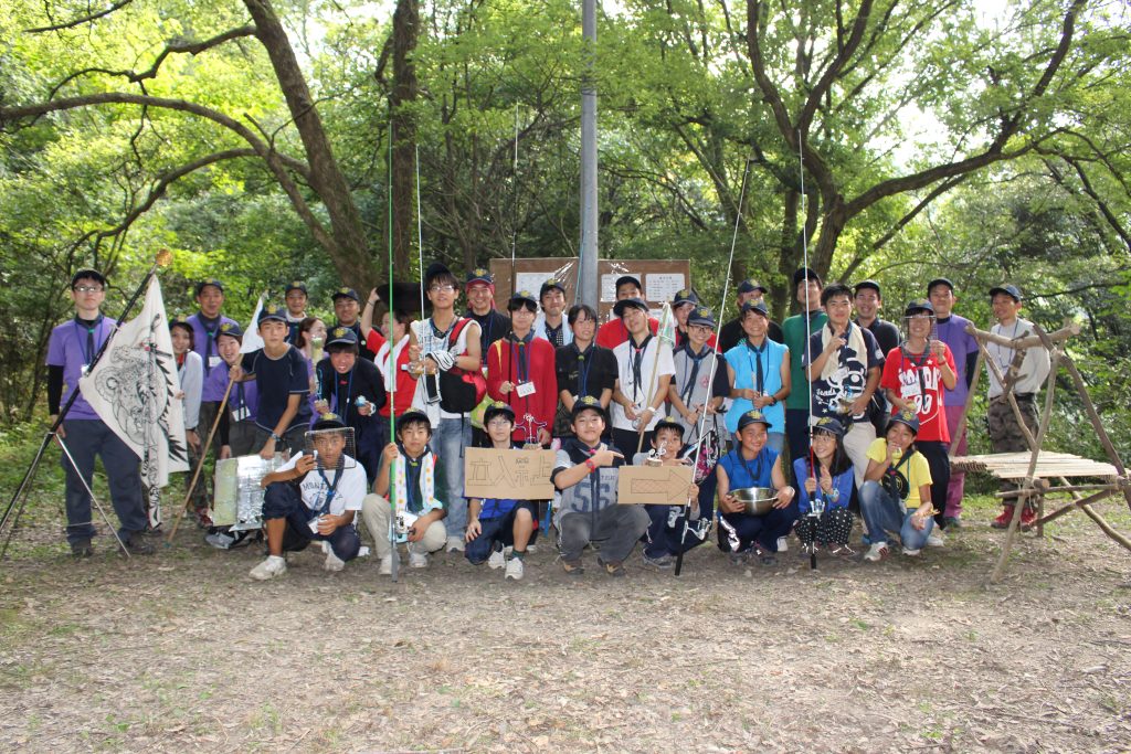 キャンプ2日目、3日目はチャレンジコーナーを実施。竹を使って立ちかまどを作る「野営工作」、ダンボールを使った燻製とオーブン料理をする「野外調理」、ルアーを作り胎金寺池での「ルアーフィッシング」、聖ヶ丘野営場内での「追跡ハイク」の4コーナーに挑戦した。班員で協力し、一つずつクリアしていくにつれ、たくましくなる参加者。チームワークも向上し、全員が全てのコーナーを終了することができた。中学3年生の7名の参加者は、3年間で12コーナー全てを見事クリアし、スーパーパイオニア賞が授与された。